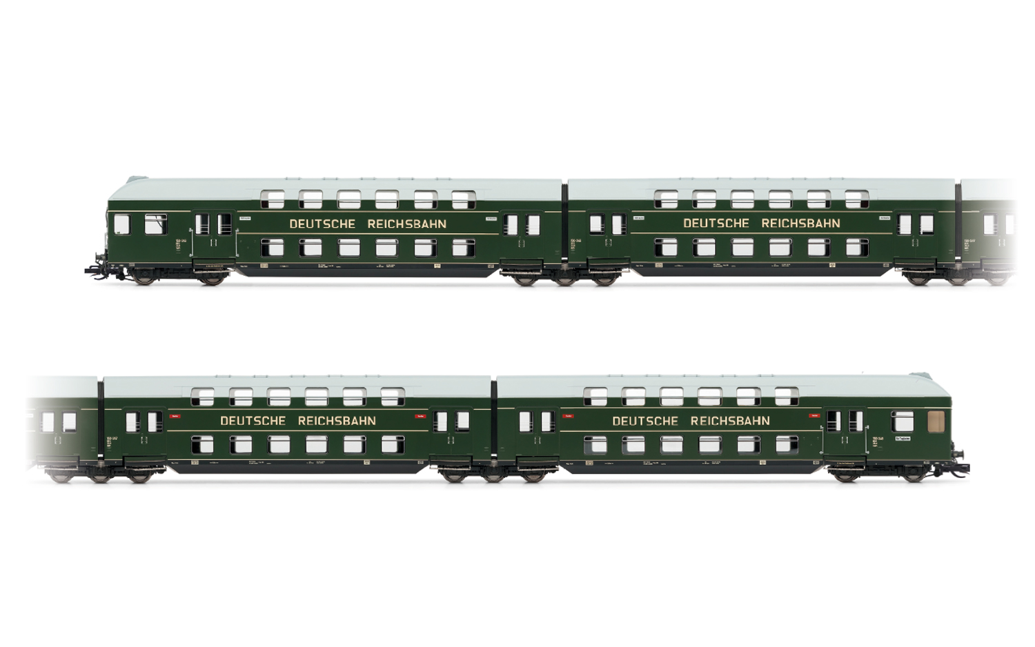 Doppelstockeinheit mit Steuerabteil, 4-teilig der Deutschen Reichsbahn, Epoche 3, in grüner Lackierung mit grauem Dach